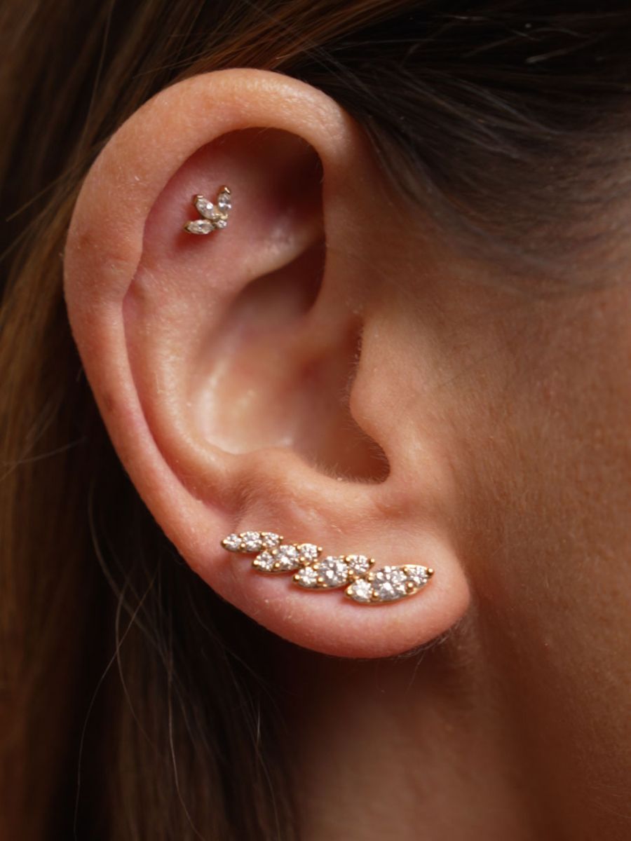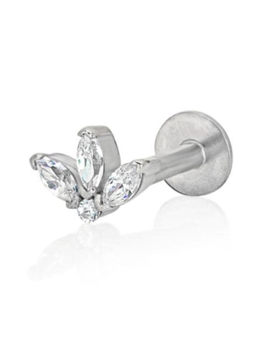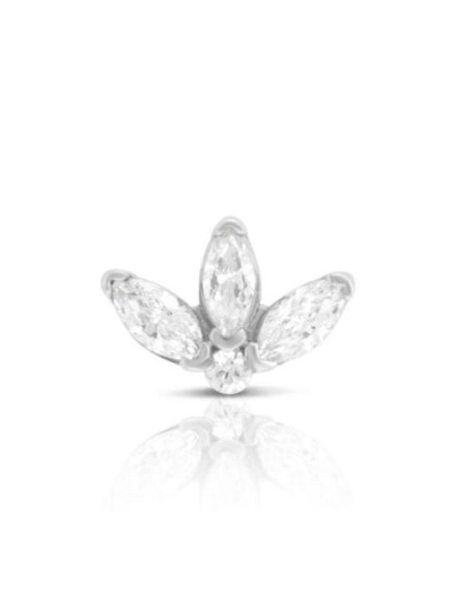 Orecchino piercing Trifoglio in oro bianco 18 kt con diamanti, chiusura a vite interna, collezione LOTHUS – LA FENICE LUXURY – 31D3820