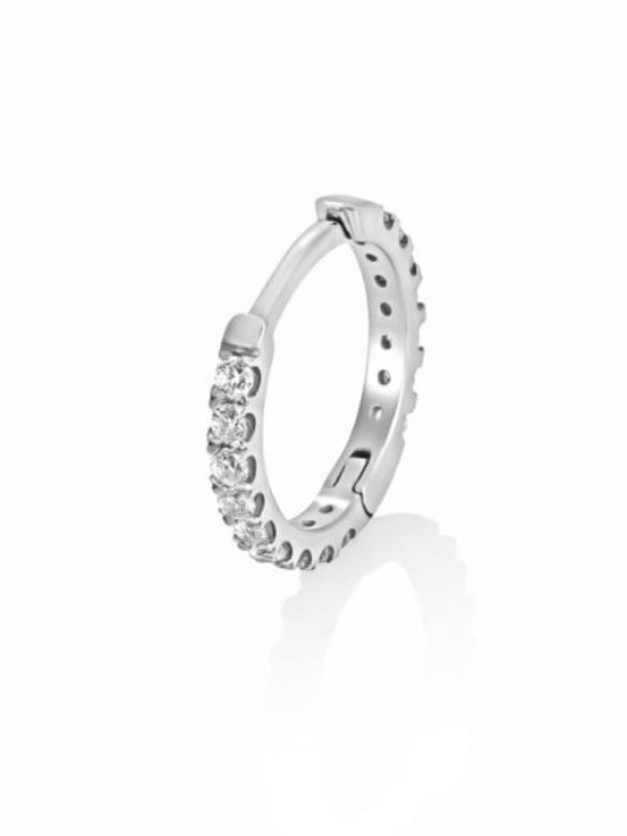 Orecchino piercing cerchio in oro bianco 18 kt con zirconi, chiusura a scatto, collezione ETERNITY - LA FENICE LUXURY - 31O3788