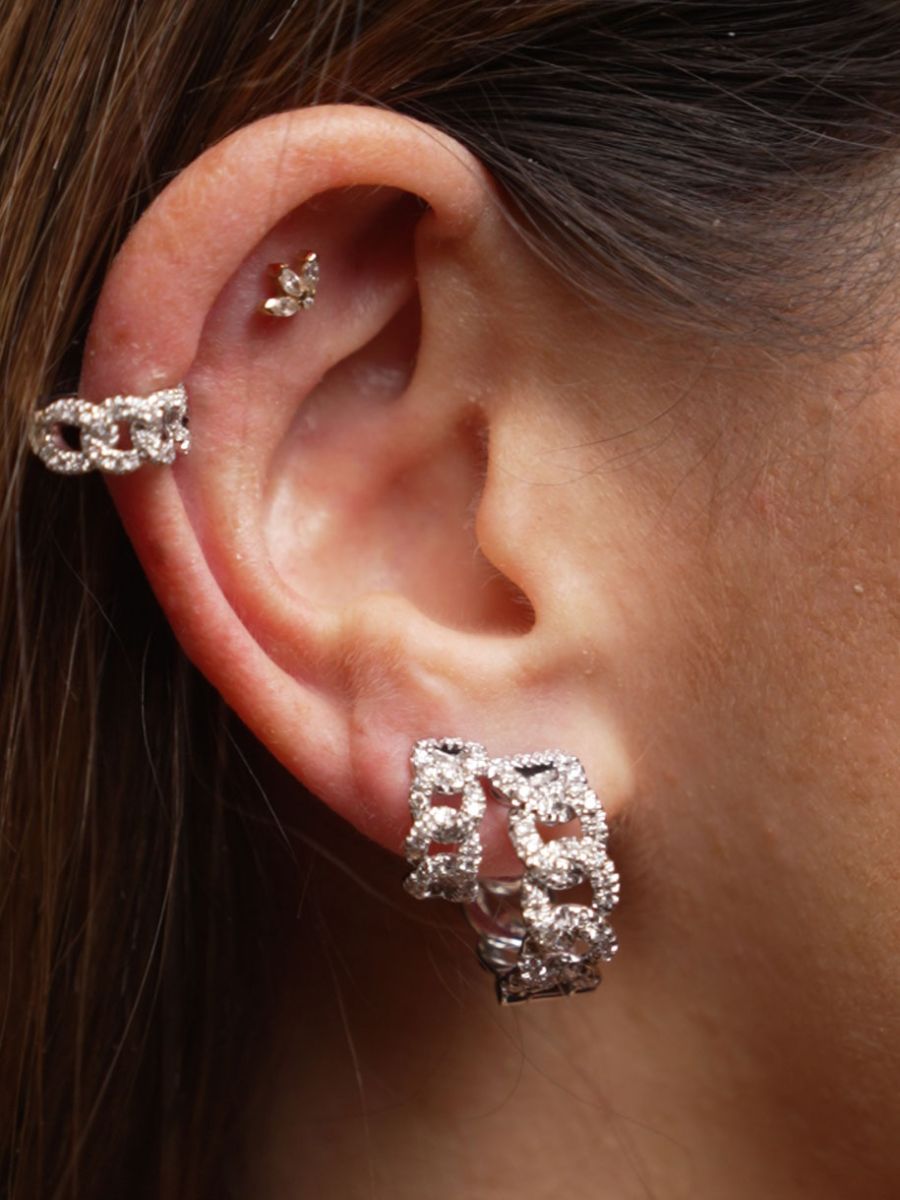 Orecchino piercing fantasia in oro bianco 18 kt con zirconi, chiusura a filo passante, collezione ETERNITY - LA FENICE LUXURY - 31O3667