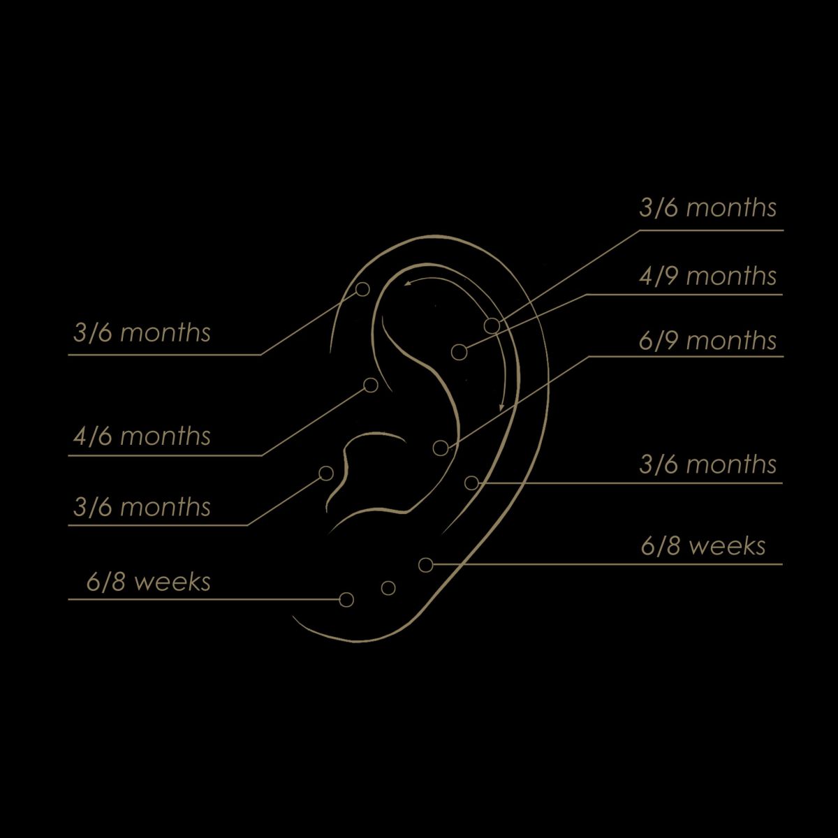 Consulta l’immagine qui accanto per scoprire i tempi medi di guarigione in base alla zona del tuo orecchio.
