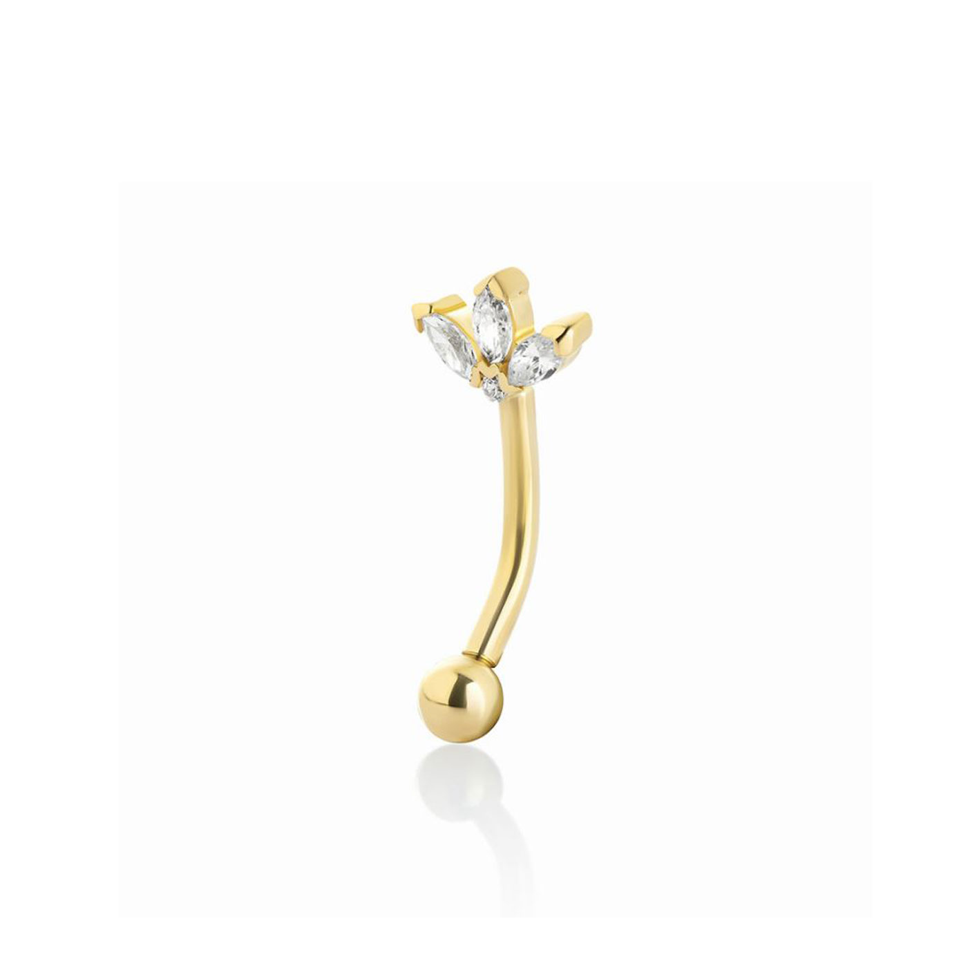 Orecchino piercing in oro giallo 18 kt e zircone, dotato di chiusura a vite. Ideale per rook. Comfort e lusso made in Italy. Scopri la nuova collezione di piercing La Fenice.