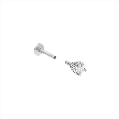 Orecchino piercing in oro bianco 18 kt e diamante, dotato di chiusura a vite interna, con retro piatto per il massimo comfort. Ideale per helix, tragus e secondo buco. Comfort e lusso made in Italy. Scopri la nuova collezione di piercing La Fenice.