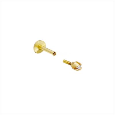 Orecchino piercing in oro giallo 18 kt e zircone, dotato di chiusura a vite interna, con retro piatto per il massimo comfort. Ideale per helix, tragus e secondo buco. Comfort e lusso made in Italy. Scopri la nuova collezione di piercing La Fenice.